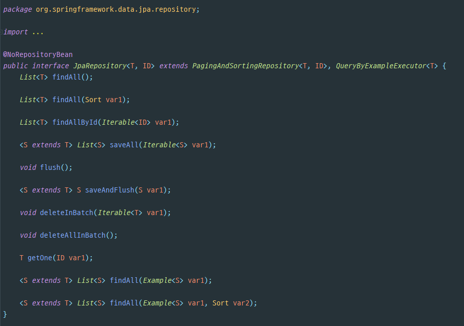 - JpaRepository 인터페이스의 계층 구조