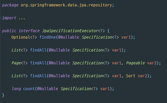 : 명세 기능을 사용하려면 org.springframework.data.jpa.repository.JpaSpecificationExecutor 인터페이스를 상속받으면 된다.