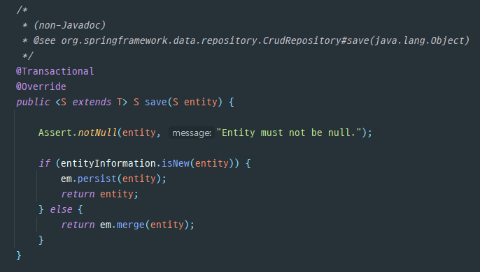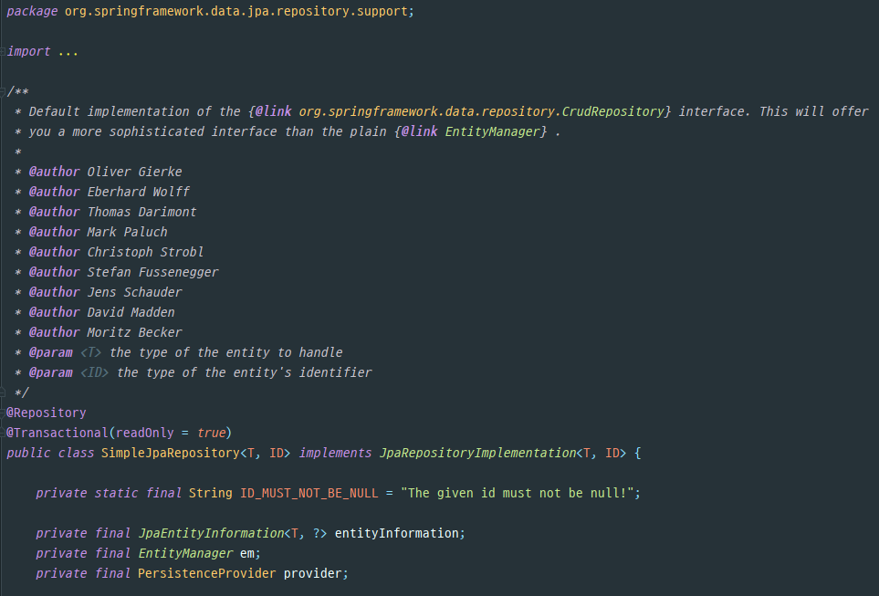 - 스프링 데이터 JPA가 제공하는 공통 인터페이스는 org.springframework.data.jpa.repository.support.SimpleJpaRepository 클래스가 구현한다.